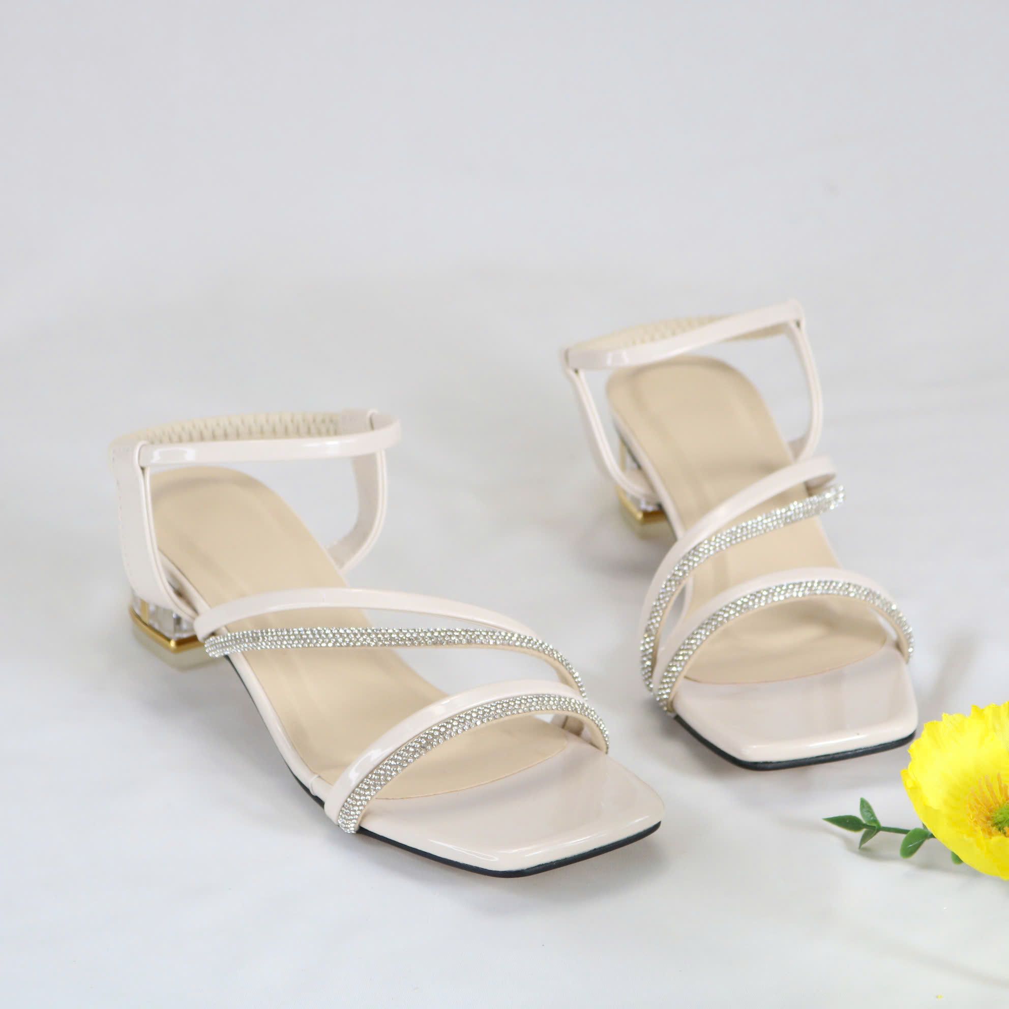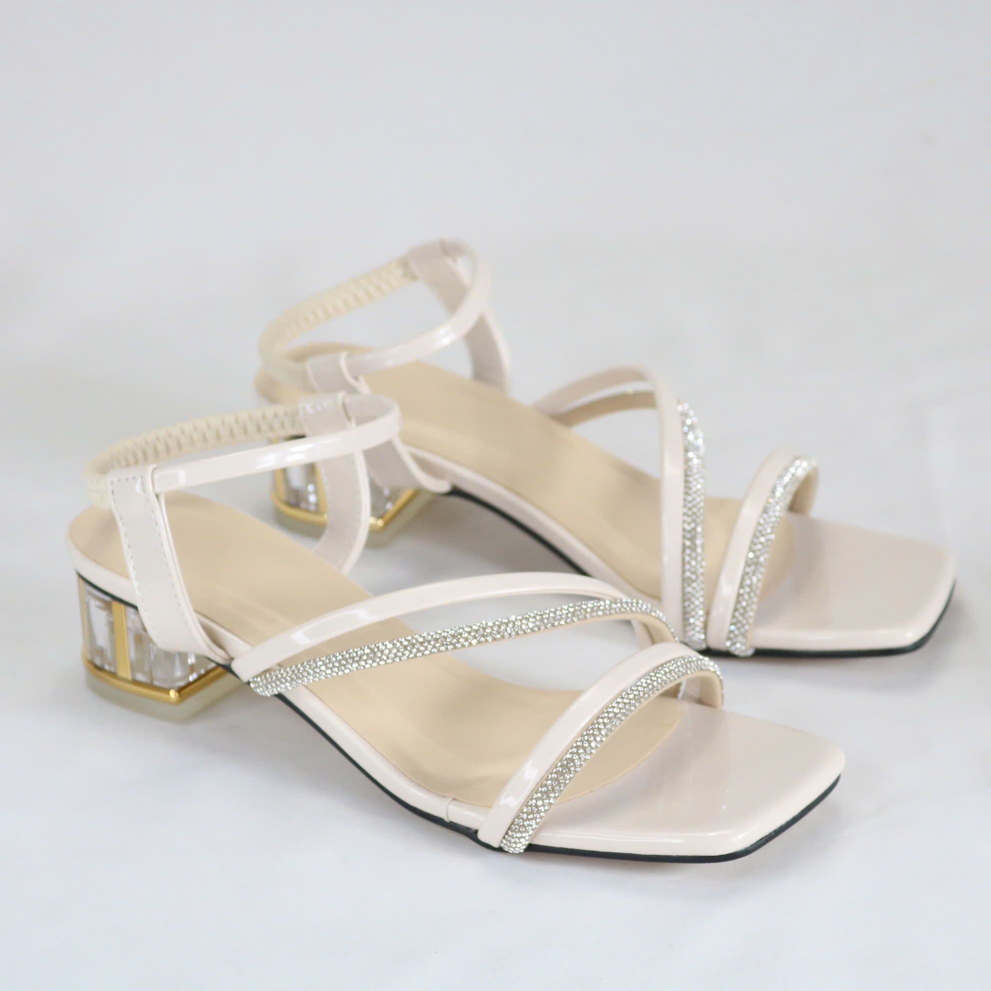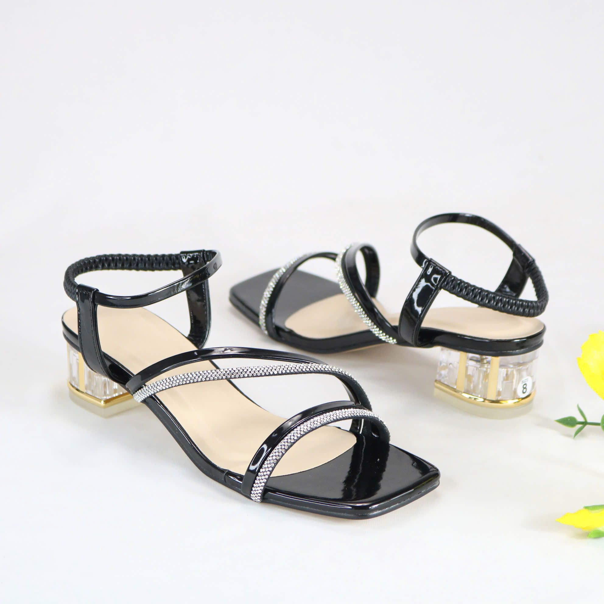 - Kiểu dáng : giày quai hậu khóa móc , kiểu quai ngang và đính hột .