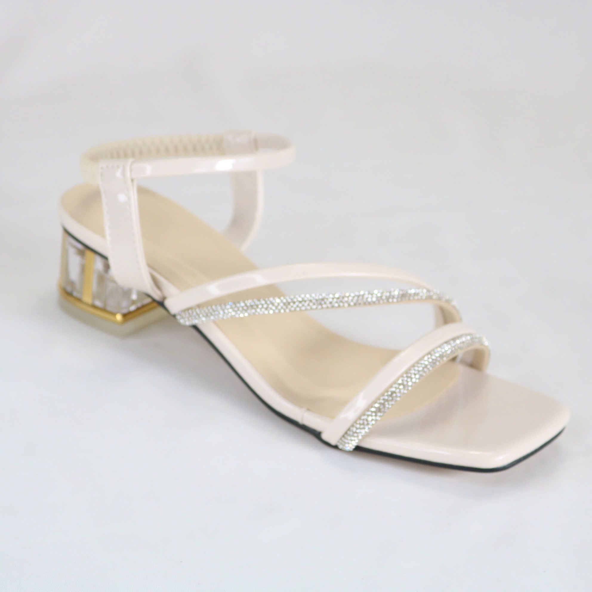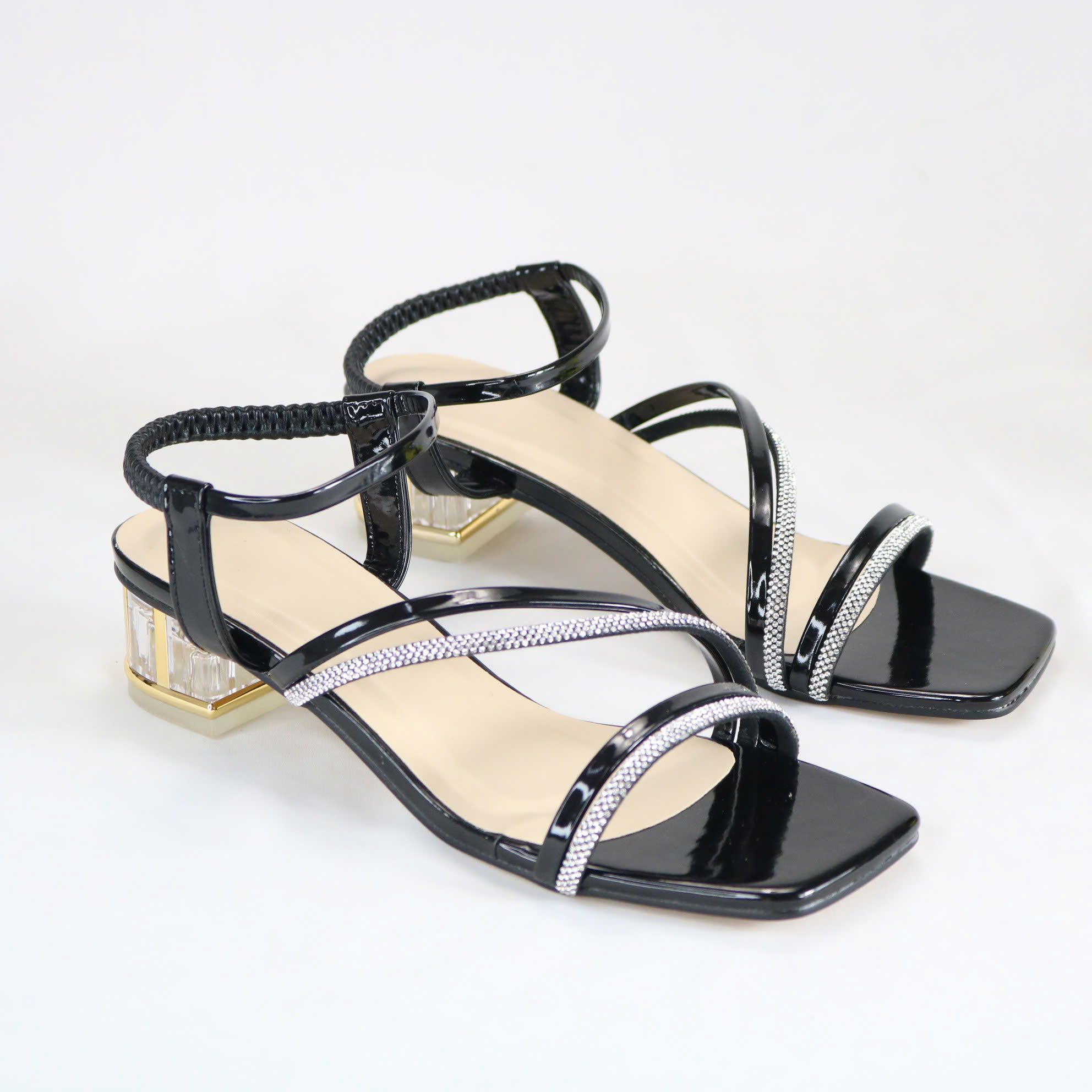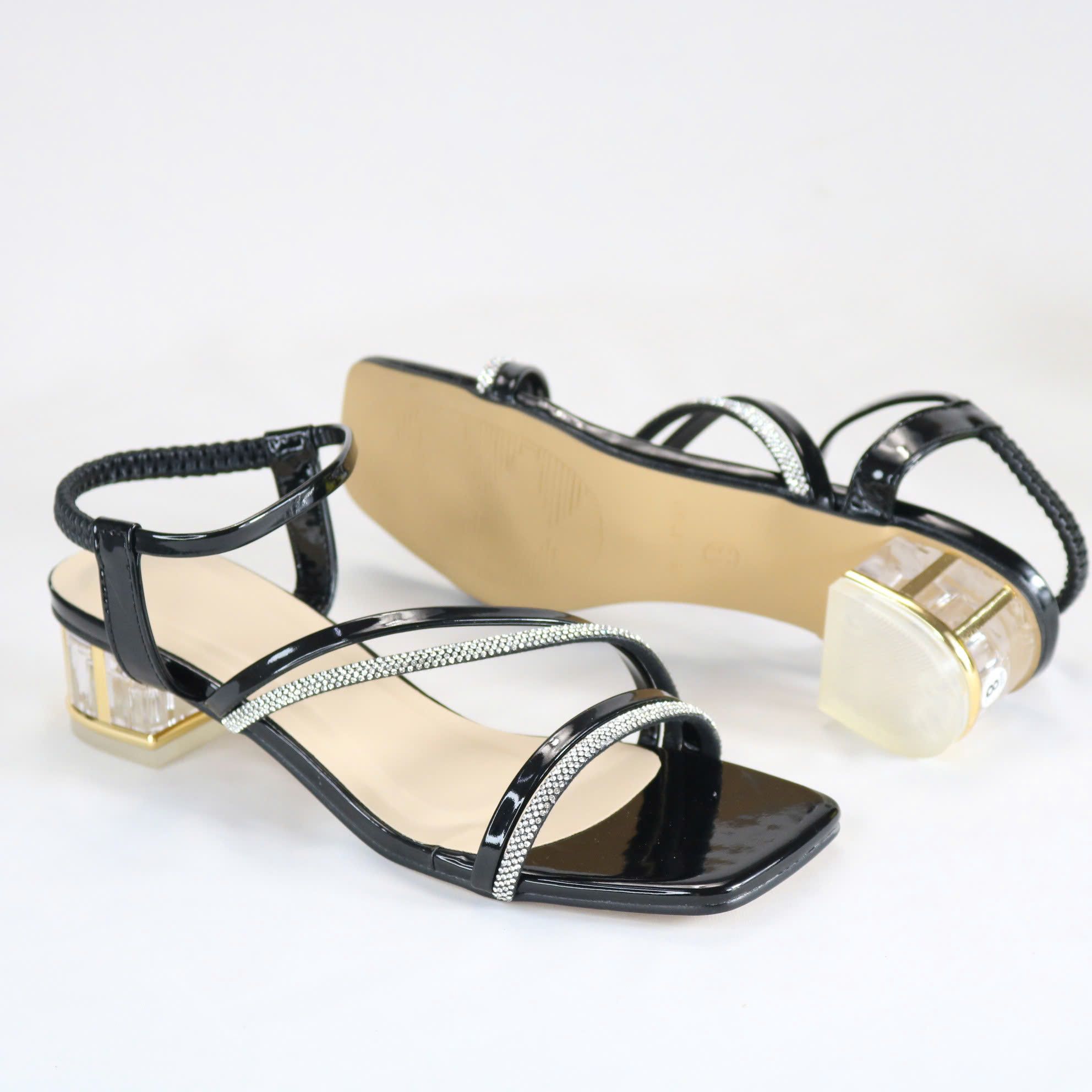 - Kiểu dáng : giày quai hậu khóa móc , kiểu quai ngang và đính hột .